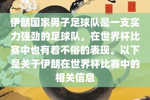 伊朗国家男子足球队在世界杯比赛中是一支备受关注的球队,他们有着强大的实力和潜力,并在比赛中展现出顽强的拼搏精神和团队合作精神。