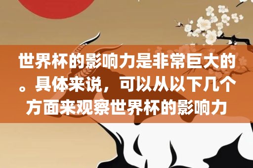 • 转载请注明来自金炬实业股份有限公司,本文标题:《世界杯的影响力是非常巨大的。具体来说,可以从以下几个方面来观察世界杯的影响力》